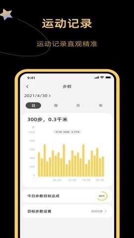 1.连接匹配手表的软件,通过软件连接手表,用户可以在软件中轻松检查心率、睡眠质量、锻炼步骤等