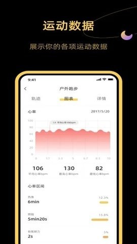 3、全面记录步数、距离、卡路里、时长、运动轨迹等数据