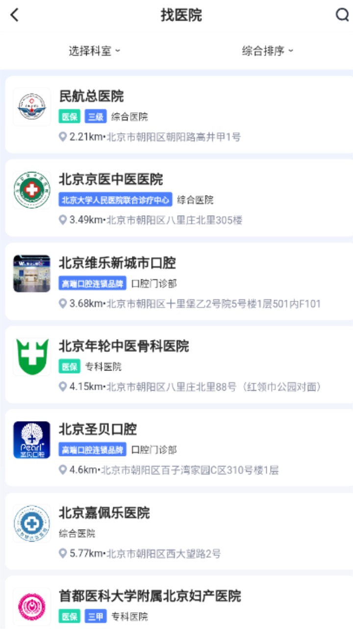 1、上面的医院全都是北京市的正规的医院,用户的选择很多;