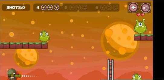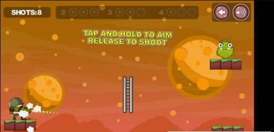 国王士兵2是一款轻松有趣的休闲类射击游戏,在游戏中玩家要扮演士兵,在各种地形上发射子弹射击怪物,每关的障碍物都会增加或变样,增加了通关的难度,玩家需要利用到折射等原理来击杀怪物。Q萌可爱的角色造型,家在游戏中将扮演一个小兵,你扛着一个火箭筒,你要巧妙的运用物理知识,用有限的炮弹将地图上的三只怪鸟击杀。每一关的怪鸟都会在不同的位置,而且每一关的障碍物都会移动或增加。你需要利用优美的抛物线将它们一个个解决掉。喜欢的朋友们快来下载吧。