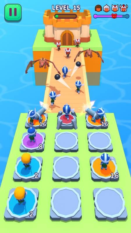 合成攻城队最新版是一款以攻城闯关为题材内容设计的休闲益智游戏,在游戏当中玩家需要不断的出动各种士兵去战斗,可以将士兵进行合成成为跟加强大的兵种,将它升级为最强大的士兵,排兵布阵,一部分向敌人发起最激烈的进攻,另一部分则守护好城堡的安全,不断地扩张城堡的领土,建立起最强大的帝国!快来下载体验!