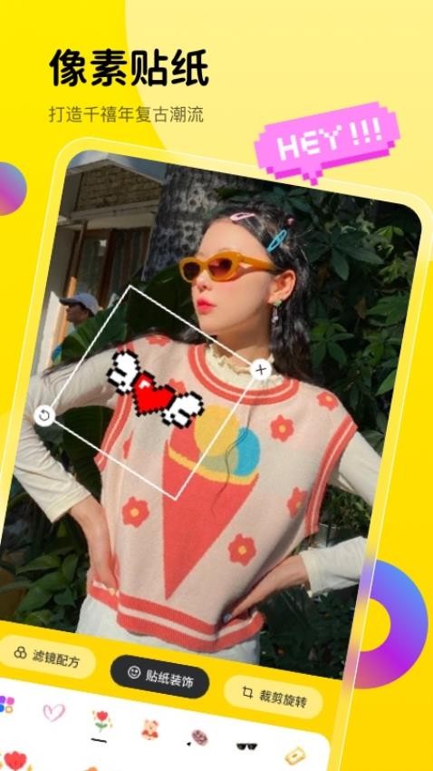 拥有海量趣味贴纸资源,能够运用贴纸让画面更可爱,展示人物的美
