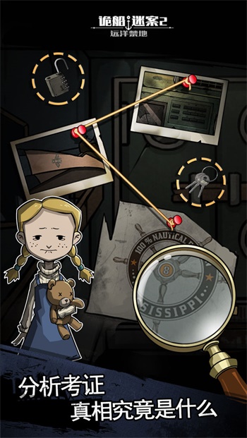 诡船谜案2是一款有大量秘密等待着你去了解的暗黑解谜游戏,游戏主打剧情各种出色的设计为游戏增加了可玩性玩家进入游戏中需要解开一道又一道的谜题,全新的游戏关卡让玩家自由探索,环环相扣的剧情故事期待你的到来,还有很多的谜题需要你去从中去寻找到个各种的线索吧,小心的去面对,层层深入去调查这里的凶手是谁吧。用最短的时间找到事件的真相,快来下载体验吧!