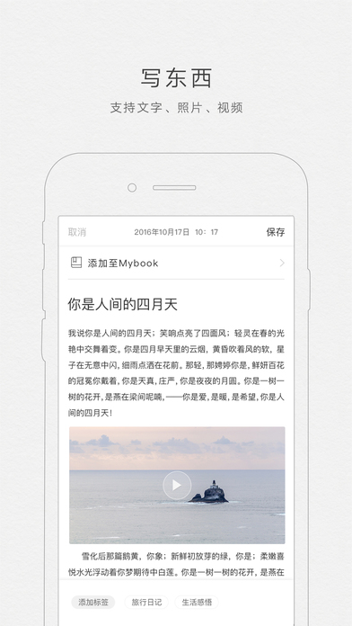 你还可以导入其他平台发布的文字,如微博、博客、豆瓣,一键导入,永久留存。这里是你的生活档案馆。