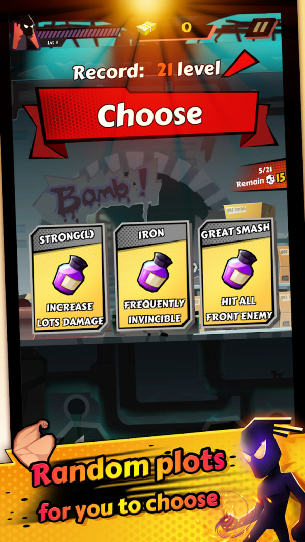 1. 选择不同的火柴人角色进行战斗。