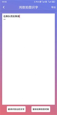 4. 翻译功能:软件内置了翻译模块,用户可以将识别后的文本进行即时翻译,支持多种语言的互译,如中英文、日英文等。