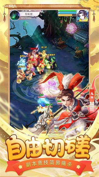 2. 游戏玩法:游戏采用回合制战斗方式,玩家可以组建自己的队伍,通过不断升级、收集装备、解锁技能等方式来提升战斗力,挑战各种妖怪和Boss。