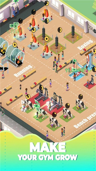 1.玩家将能体验到好玩的模拟健身房内容,拥有诸多有趣的经营游戏和玩法特征。