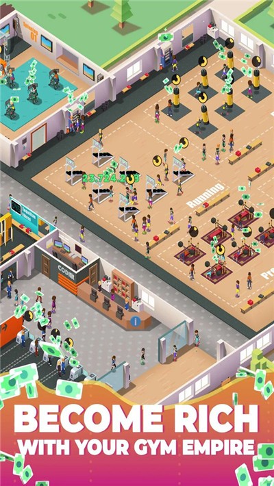 游戏中的玩家能为你带来不同的战斗和游戏背景,并让你的健身中心变得更具吸引力,还能通过聘推广教练和名人到您的健身房中为你宣传。在这部作品中的玩家将要感受不一样的游戏乐趣,并在广阔的城市中建立自己的健身房并成为健身教练,你能通过赚取足够多的金币在游戏中改善自己的生活。