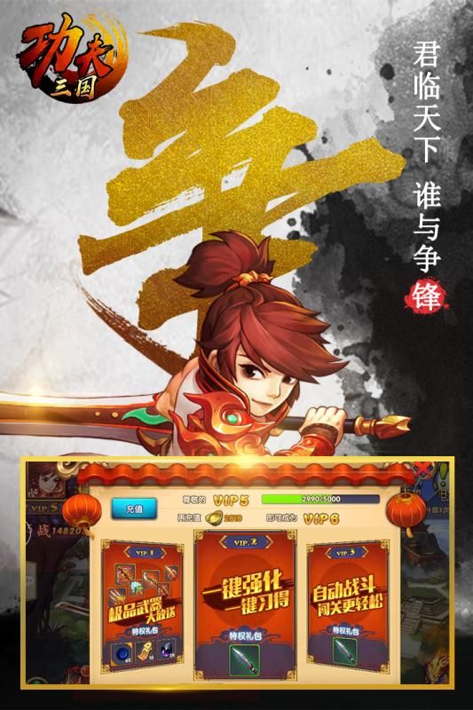 《功夫三国》是一款以三国为背景,结合了中国传统武侠文化的多人在线角色扮演游戏。玩家将扮演一位三国时期的武将,体验战斗、冒险、养成等多种游戏玩法,在游戏中结交好友,建立自己的势力,最终实现统一三国的梦想。