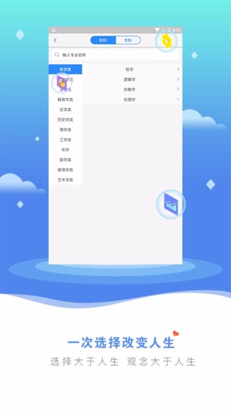 有提供专业查询功能,支持以就业方向的不同寻找合适的大学专业,选定合适的学习专业;
