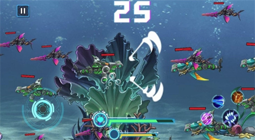 1. 吞噬系统:玩家通过操纵小鱼,吞噬比自己小的机械生物,逐渐成长为大鱼。