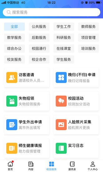 4. 生活:提供校园卡服务、图书馆服务、互动社区等功能。