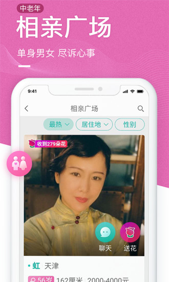 中老年生活社交平台是一款专为中老年人群设计的社交应用,旨在为他们提供一个安全、友好、便捷的交流平台,让他们能够分享生活、交流经验、结识新朋友。
