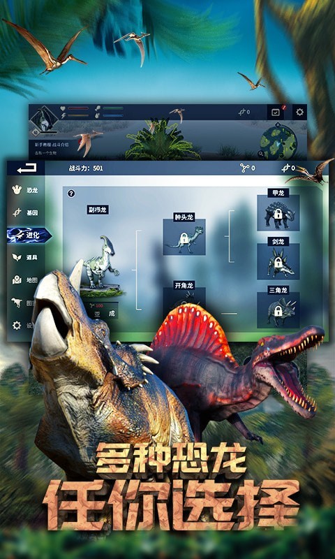 1. 收集并培育各种恐龙,了解它们的习性和特点。