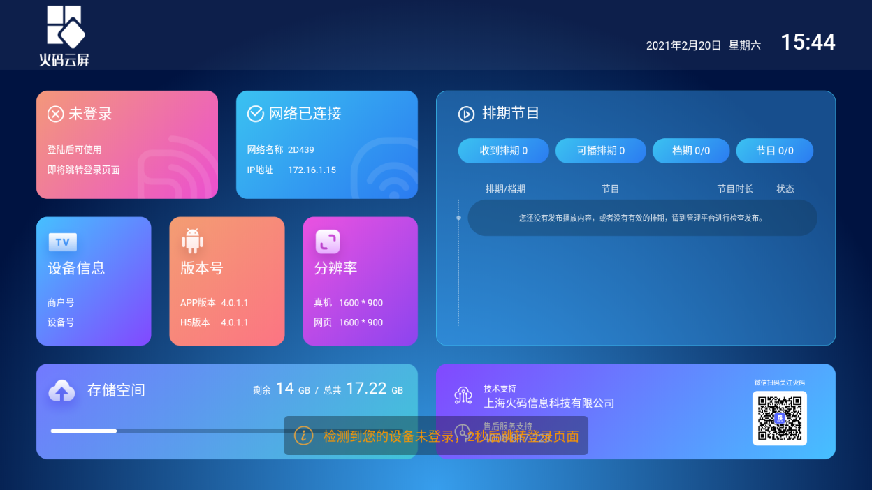 1. 下载并安装火码云屏软件,打开后进行登录。