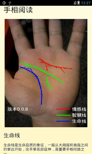 1. 手相识别:自动识别手掌照片中的主要线条、形状和纹理,如生命线、智慧线、感情线等。