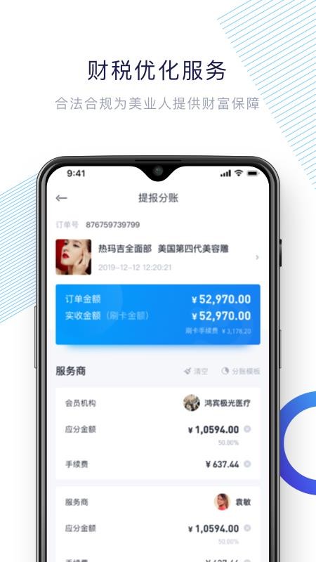 5、财务人员可以在此审核分账,可以对医美机构的资产进行实时的管理和处理;