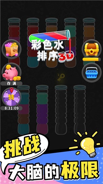 彩色水排序是一款益智类游戏,玩家需要通过将不同颜色的水倒入不同的容器中,使得每个容器中只有一种颜色的水。游戏的目标是尽可能地用最少的步骤完成排序任务,挑战玩家的逻辑思维和空间想象能力。