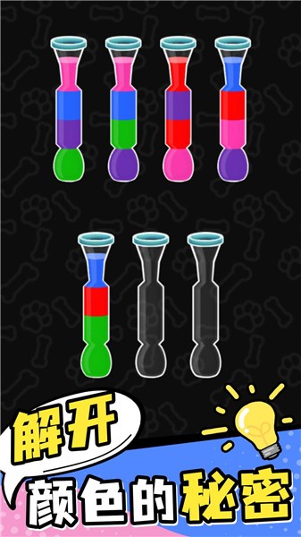2. 玩家需要通过点击屏幕,将彩色的水从一个容器倒入另一个容器。