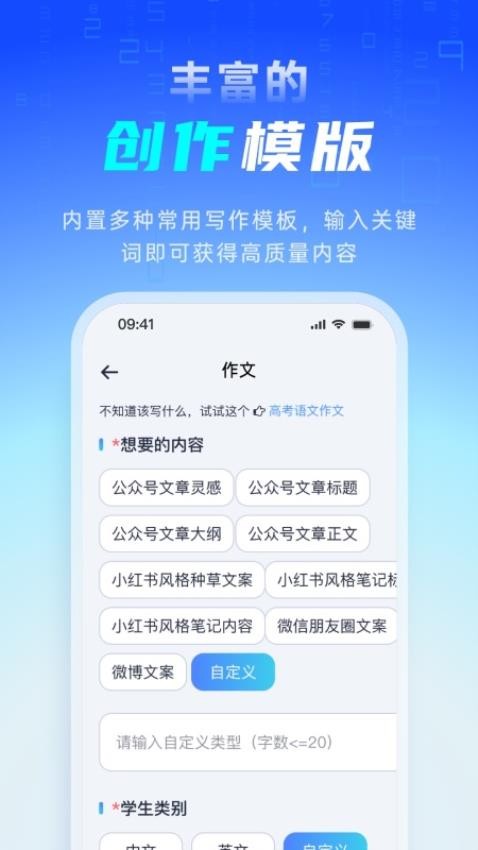 1. 文本生成:支持多种类型文本的生成,如文章、摘要、评论等。