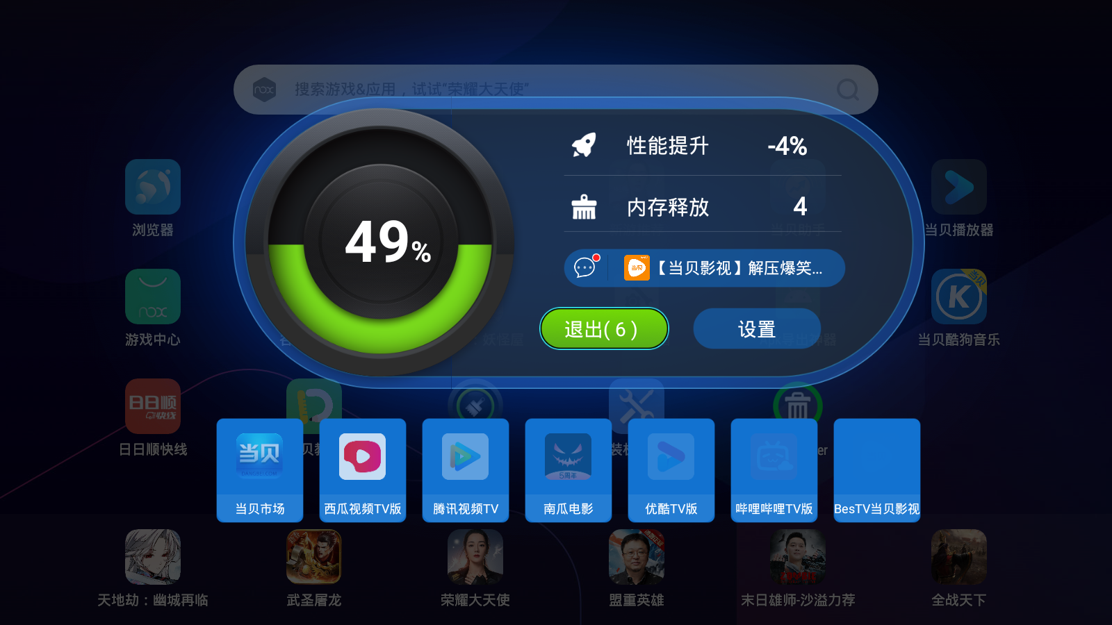 2. 打开软件:安装完成后,打开一键清理TV版应用。