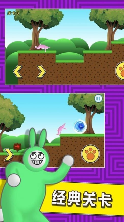 《沙雕兔子人》讲述了一只渴望成为英雄的兔子,在神秘的奇幻世界中展开冒险的故事。玩家需要帮助兔子解决各种谜题,克服重重困难,逐渐揭示这个世界的秘密。游戏过程中,玩家将遇到各种有趣的角色,与他们互动,共同推动故事的发展。