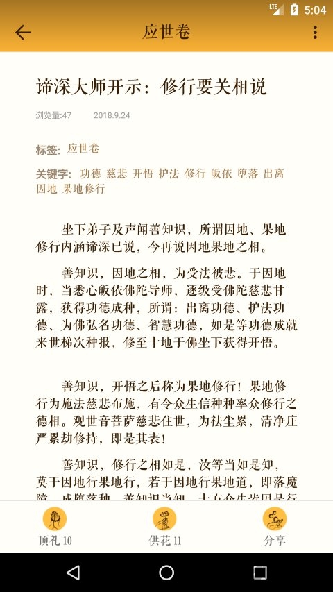 2. 浏览学习:在首页推荐、分类浏览等板块浏览佛教资讯、修行指导等内容,提高修行水平。