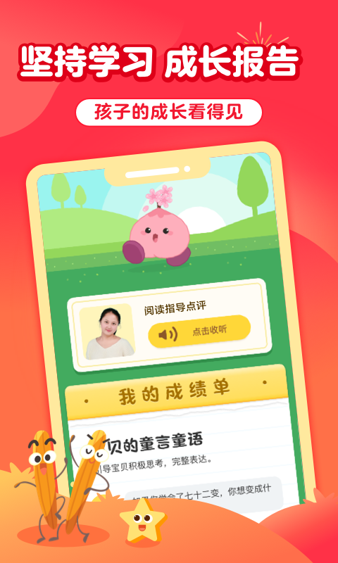 儿童益智阅读课适合3-10岁的儿童使用,拥有丰富多样的阅读材料和互动功能,包括有声故事、动画绘本、互动游戏等,能够满足不同年龄段儿童的阅读需求。软件界面简洁友好,操作便捷,方便儿童独立使用。