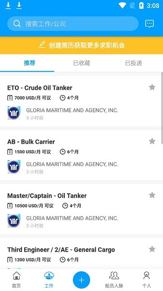 2. 简历投递与管理:求职者可以上传并管理自己的简历,轻松投递给心仪的船舶企业。