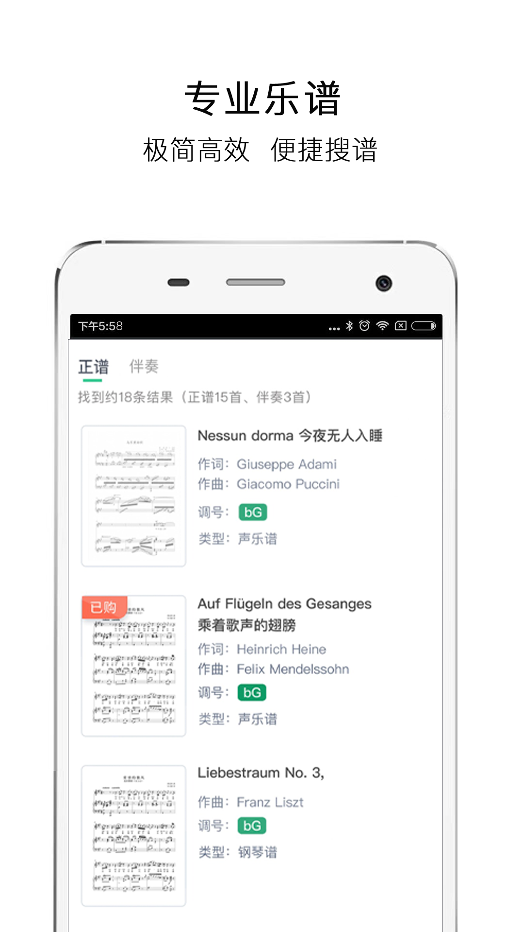 2. 乐谱搜索:提供智能搜索功能,帮助用户快速找到所需的乐谱。