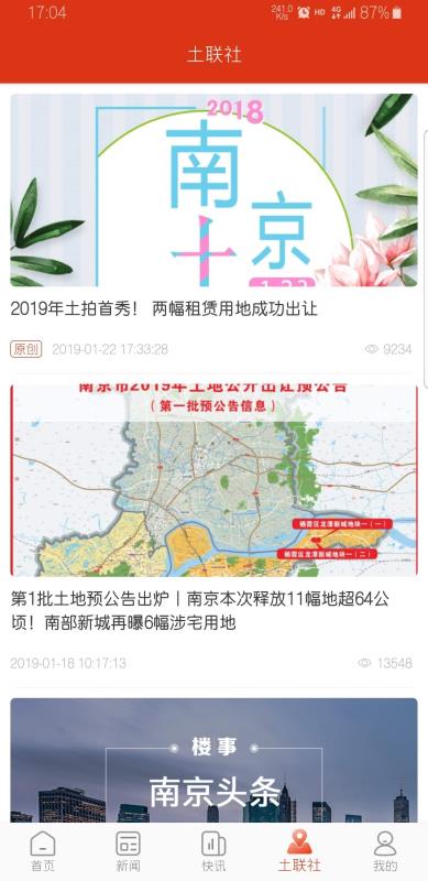 5、可以进入土联社,查看国家发布的重要楼事土地新闻内容。