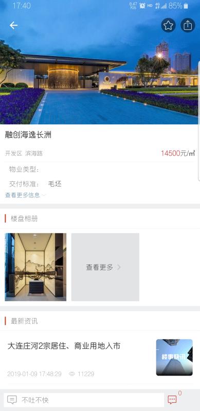 2、随时都可以搜索和查询楼盘,进入主界面进行评论留言等。