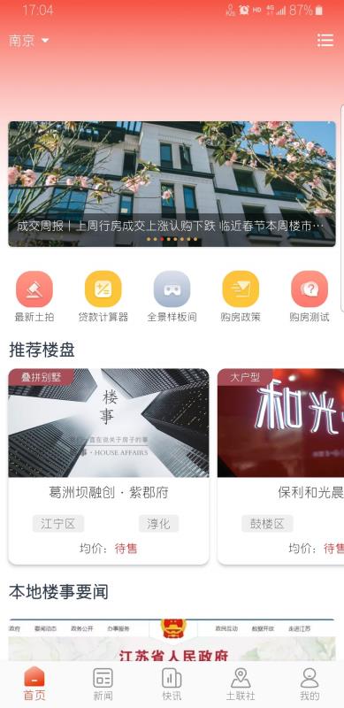 掌上楼事是一款好用的房地产资讯平台,在这里你能够了解最新最权威的房地产资讯新闻,及时了解各地段房间对比,让你能够清楚的明白房价高低与差距的对比,软件现在已经覆盖南京、上海、苏州、无锡等城市致力于给予本地住民一个更好的房产新闻获取平台,让用户能够紧跟政策步伐,不要错过购房买房的绝佳时期,还等什么,感兴趣的话就快来下载体验吧!