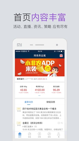 网易贵金属是一款专业的贵金属投资交易平台,拥有完善的交易系统和丰富的投资工具,为用户提供安全、便捷、高效的贵金属投资服务。平台支持多种交易方式,包括限价单、市价单、止损单等,满足不同用户的交易需求。
