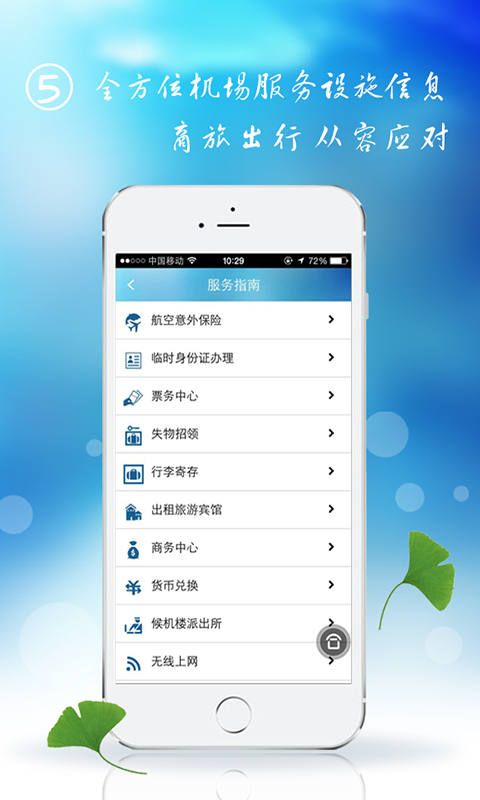 2. 机场地图导航功能,帮助用户快速找到所需服务设施。