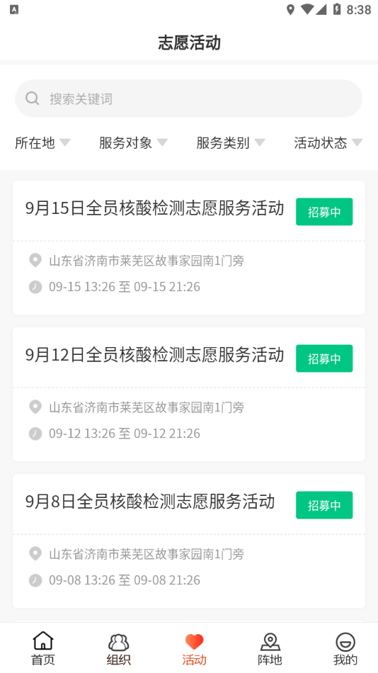 2. 使用搜索功能,输入关键词查找特定类型的志愿服务活动。