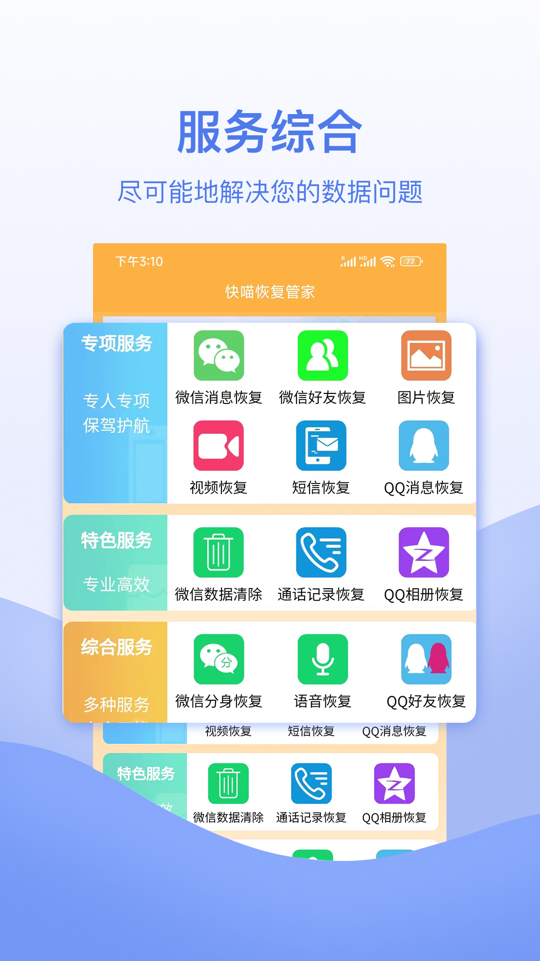 快喵恢复管家是一款专业的数据恢复软件,致力于帮助用户恢复因各种原因丢失或删除的文件。无论是误删、格式化、系统崩溃还是病毒感染,只要数据未被覆盖,快喵恢复管家都有可能帮您找回。