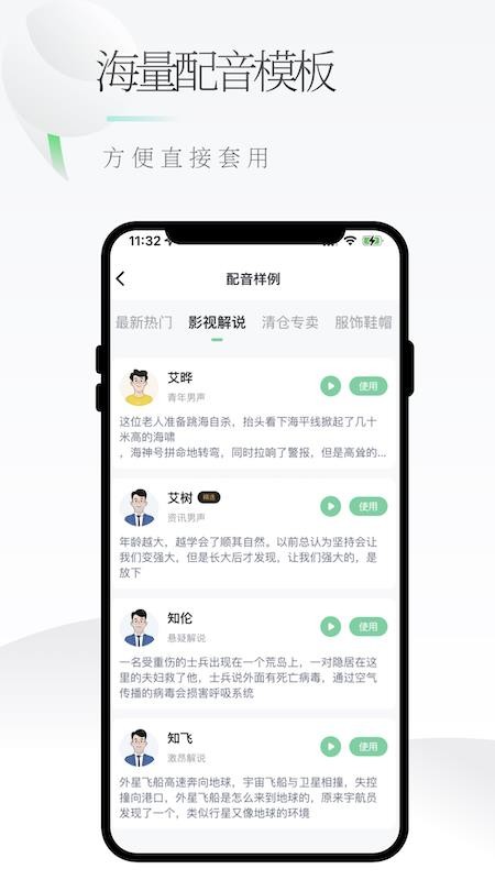 2. 丰富多样的声音库:app提供多种不同类型和风格的声音库,包括男声、女声、童声等,满足用户在不同场景下的配音需求。