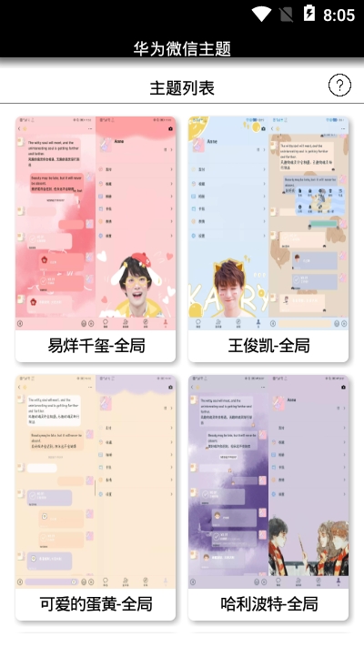 华为微信主题致力于为华为手机用户提供个性化、多样化的微信主题选择。用户可以根据自己的喜好和需求,在众多的主题中挑选出最适合自己的那一款。同时,软件还提供了简单易用的操作界面,方便用户快速完成主题的设置和更换。