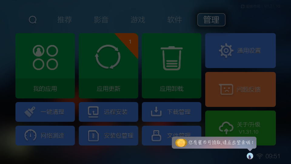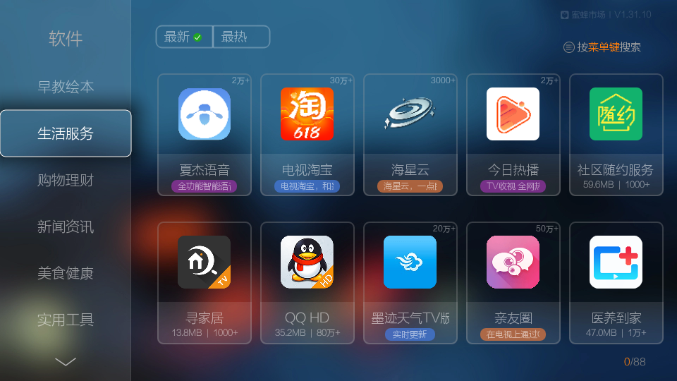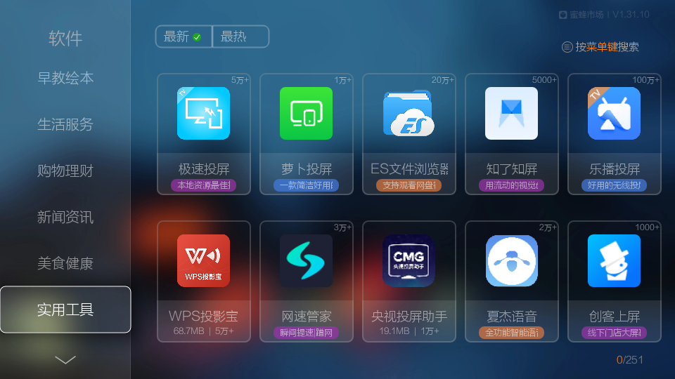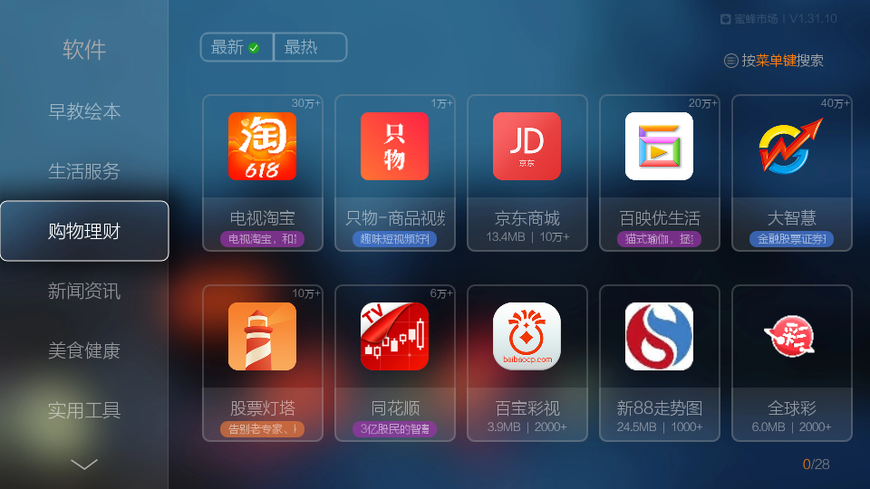 1. 下载并安装蜜蜂市场TV应用至智能电视或电视盒子。