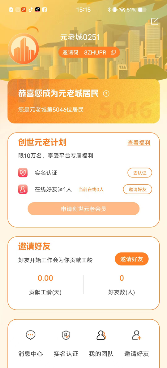 1. 下载并安装元老城app,注册并登录账号。
