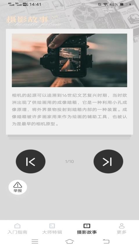 摄影入门指南app拥有简洁明了的用户界面和丰富的功能,适合各年龄层次的摄影爱好者使用。该应用支持多种语言,覆盖全球范围内的用户,为摄影爱好者提供了一个便捷的学习平台。
