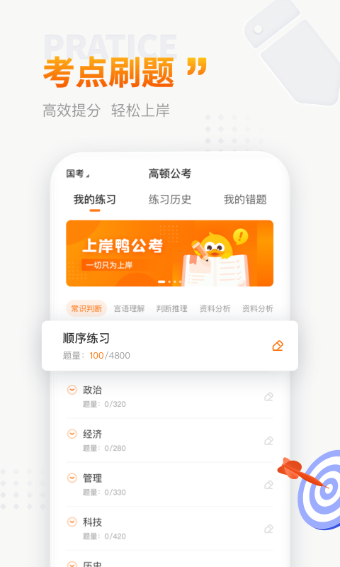 上岸鸭公考APP是一款专为公务员考试设计的备考工具。它集合了丰富的学习资源、智能的学习管理和便捷的用户体验,帮助考生高效备考,提升应试能力。