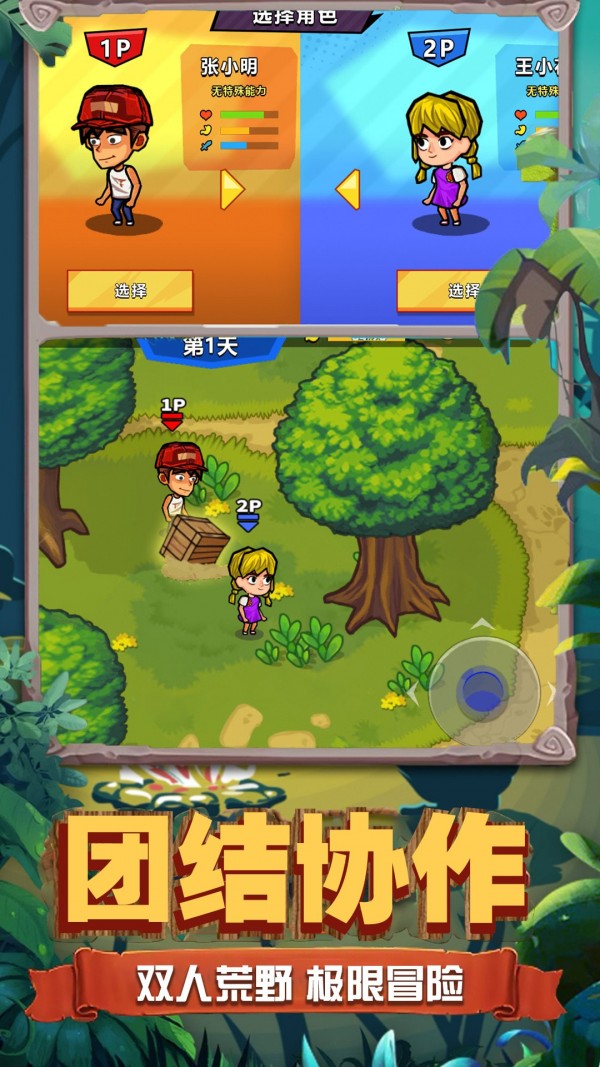 1. **合作生存**:玩家需要共同收集资源、建造庇护所、制作工具等,确保双方的生存。