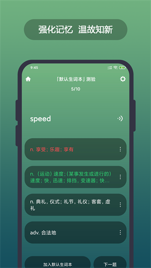 4. 利用复习功能,定期回顾已学单词,巩固记忆。