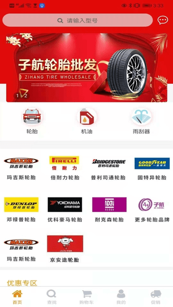 1. 打开子航轮胎应用,选择车型或输入车辆信息,开始查询适合的轮胎。