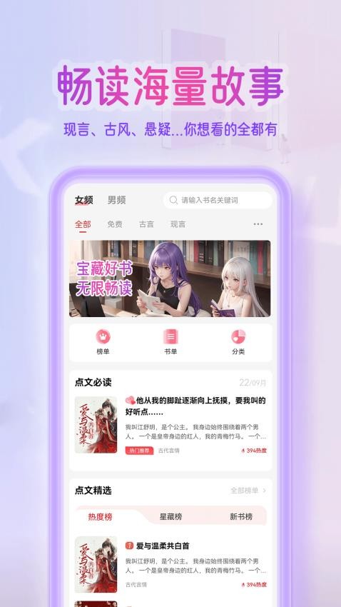 1. 海量小说资源:点文小说拥有庞大的小说库,涵盖了各类题材和风格的作品,满足用户的多样化阅读需求。