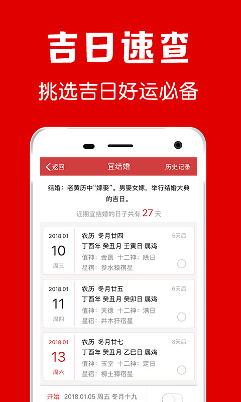 4. 查询每日宜忌、黄道吉日,为日常活动提供参考。