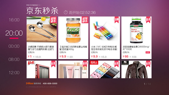 1. 商品浏览:提供丰富的商品分类和搜索功能,用户可以在电视上轻松浏览京东上的各类商品。